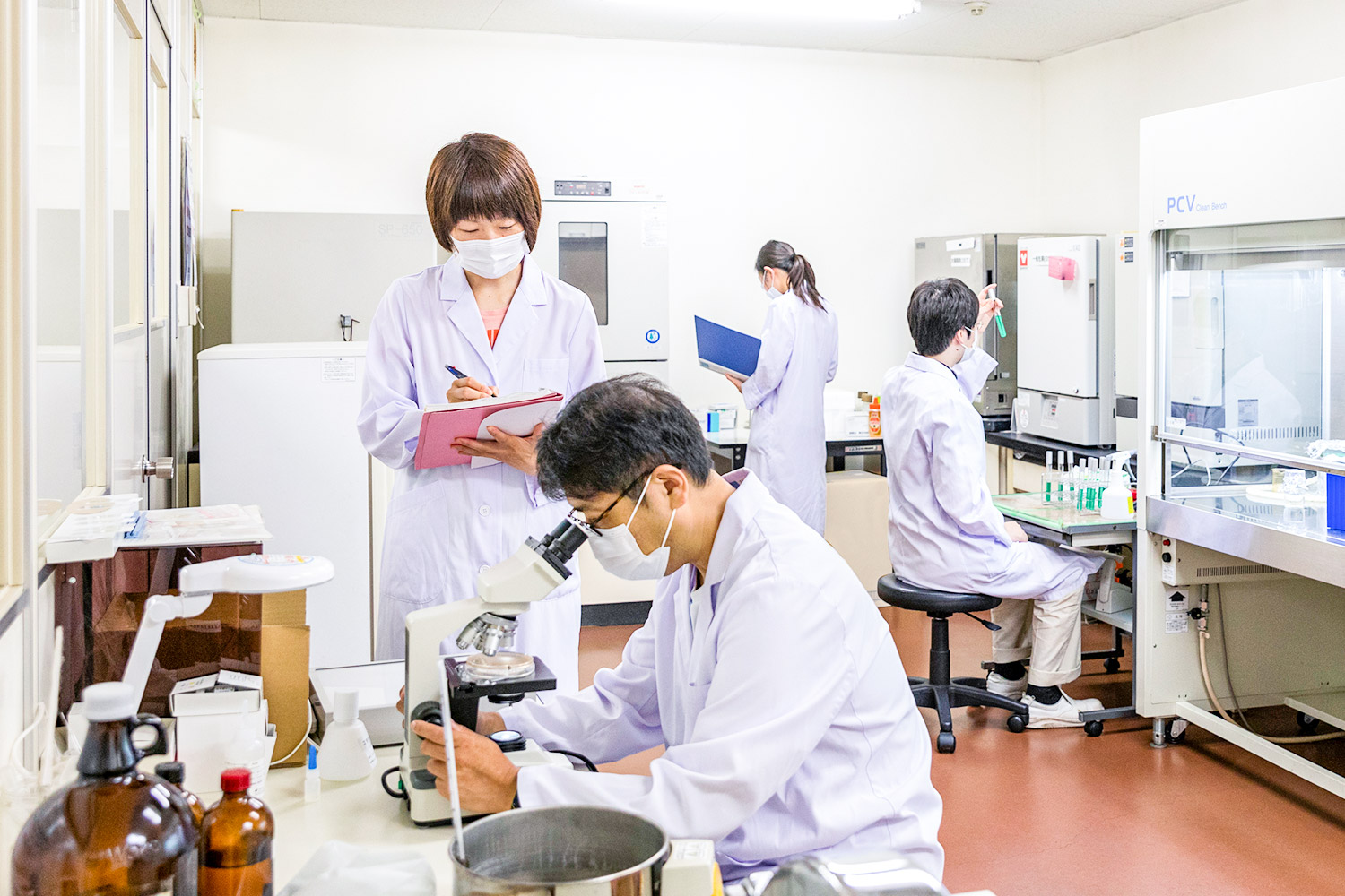 試験では原料レベルから出荷直前まで、すべての段階で品質検査を実施し、有用性・安全性の確認をしています。